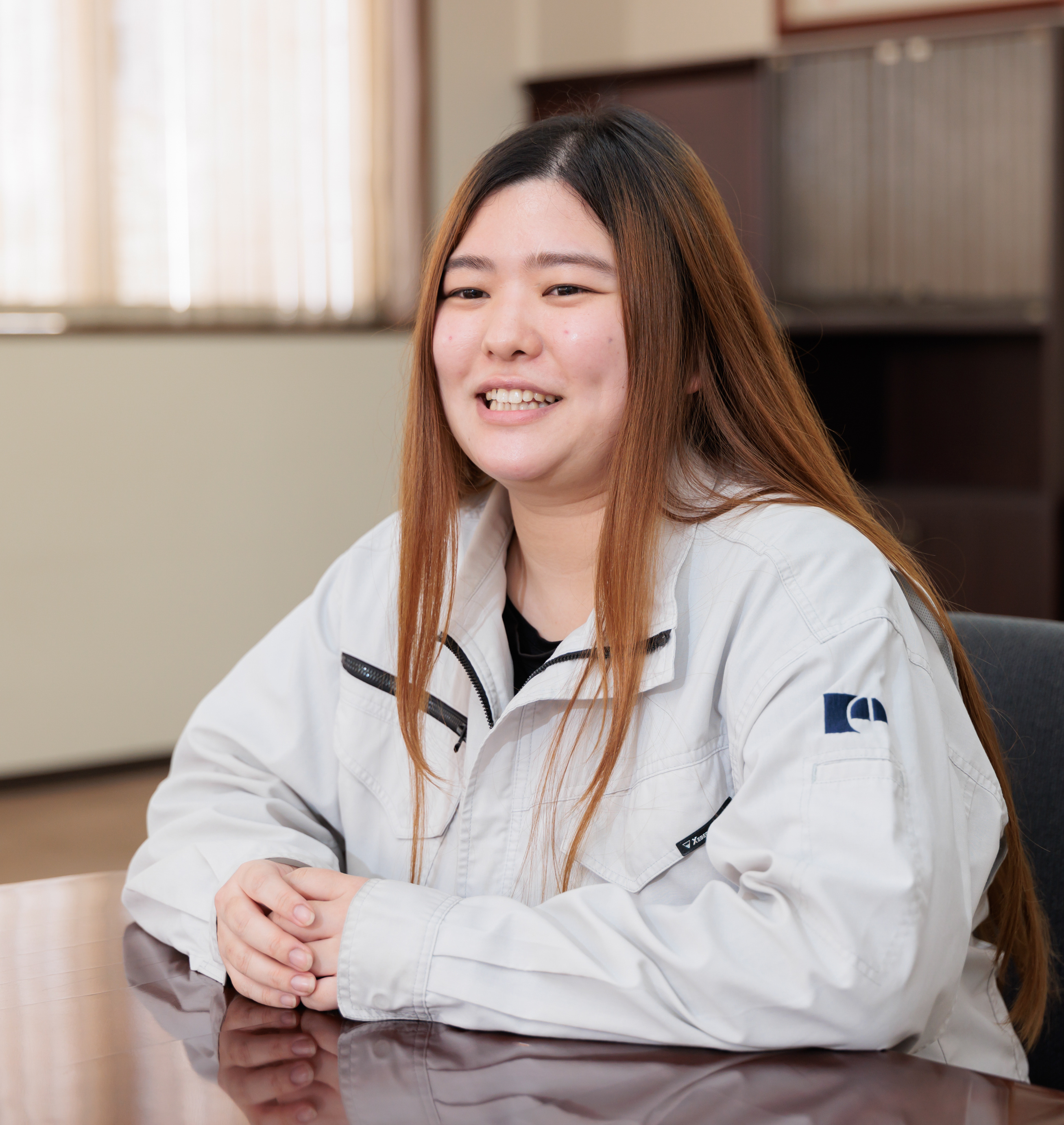 茨城県出身。大学では経営学を学び、社会を支えるものづくりに興味を持って入社。明るく人好きのする人柄で、先輩からも可愛がられている。